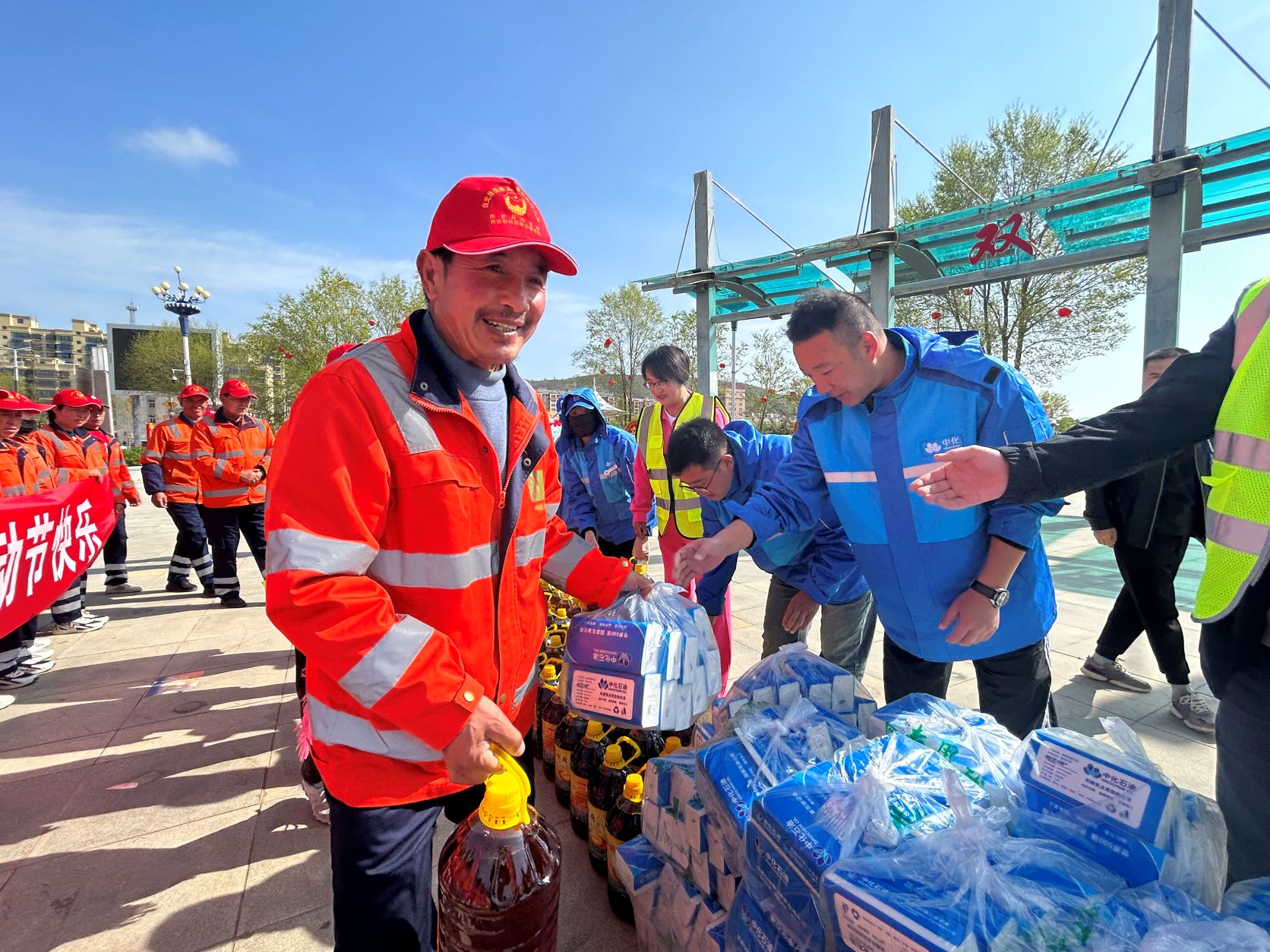 在“五一”國際勞動節(jié)來臨之際,寧夏穩(wěn)恩石油有限公司帶著慰問禮品,給西吉楹環(huán)全體環(huán)衛(wèi)工人送來節(jié)日的問候,向他們表達崇高的敬意,感謝他們用大愛傳遞溫情、用溫情點亮城市的奉獻精神。